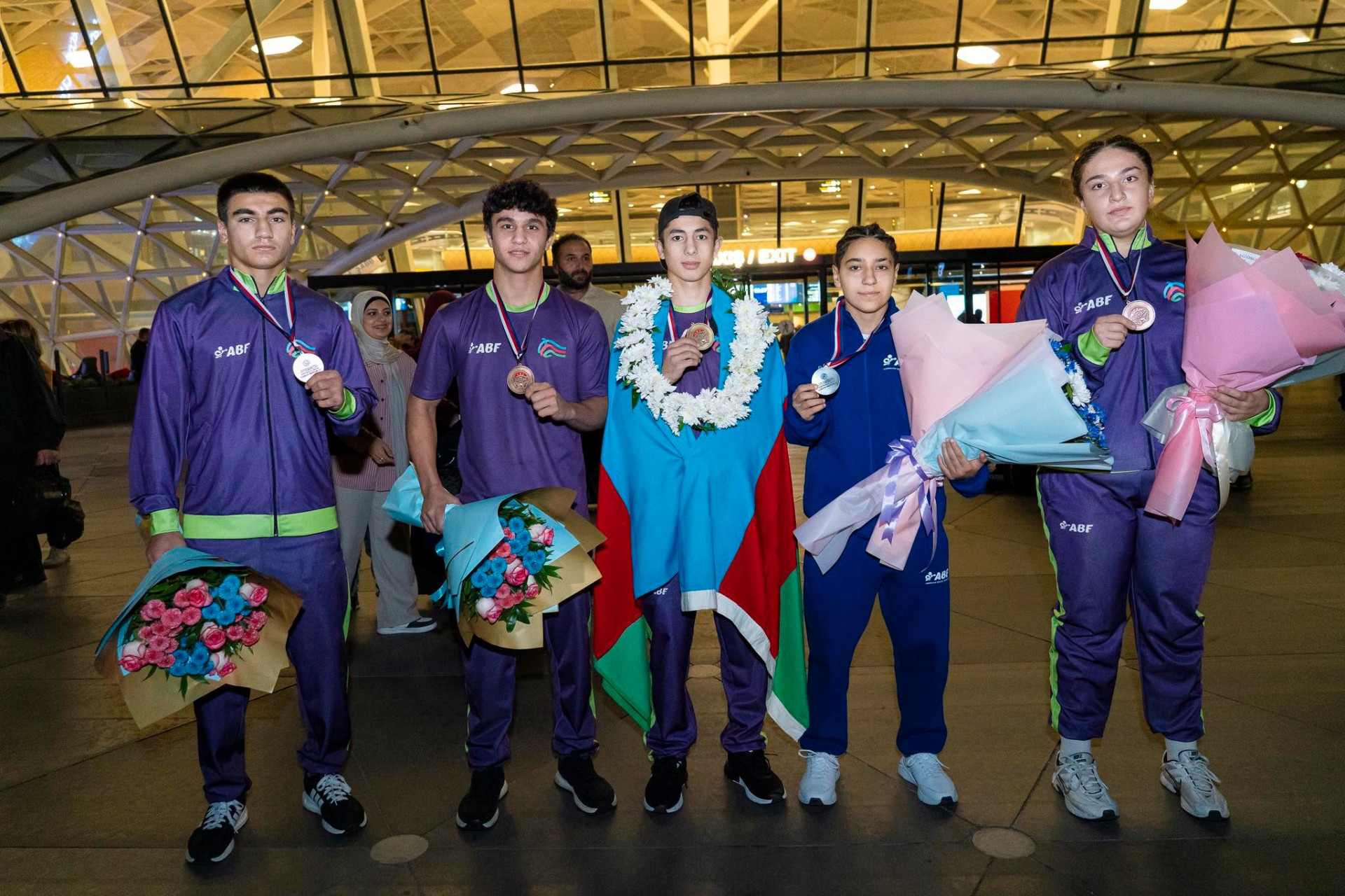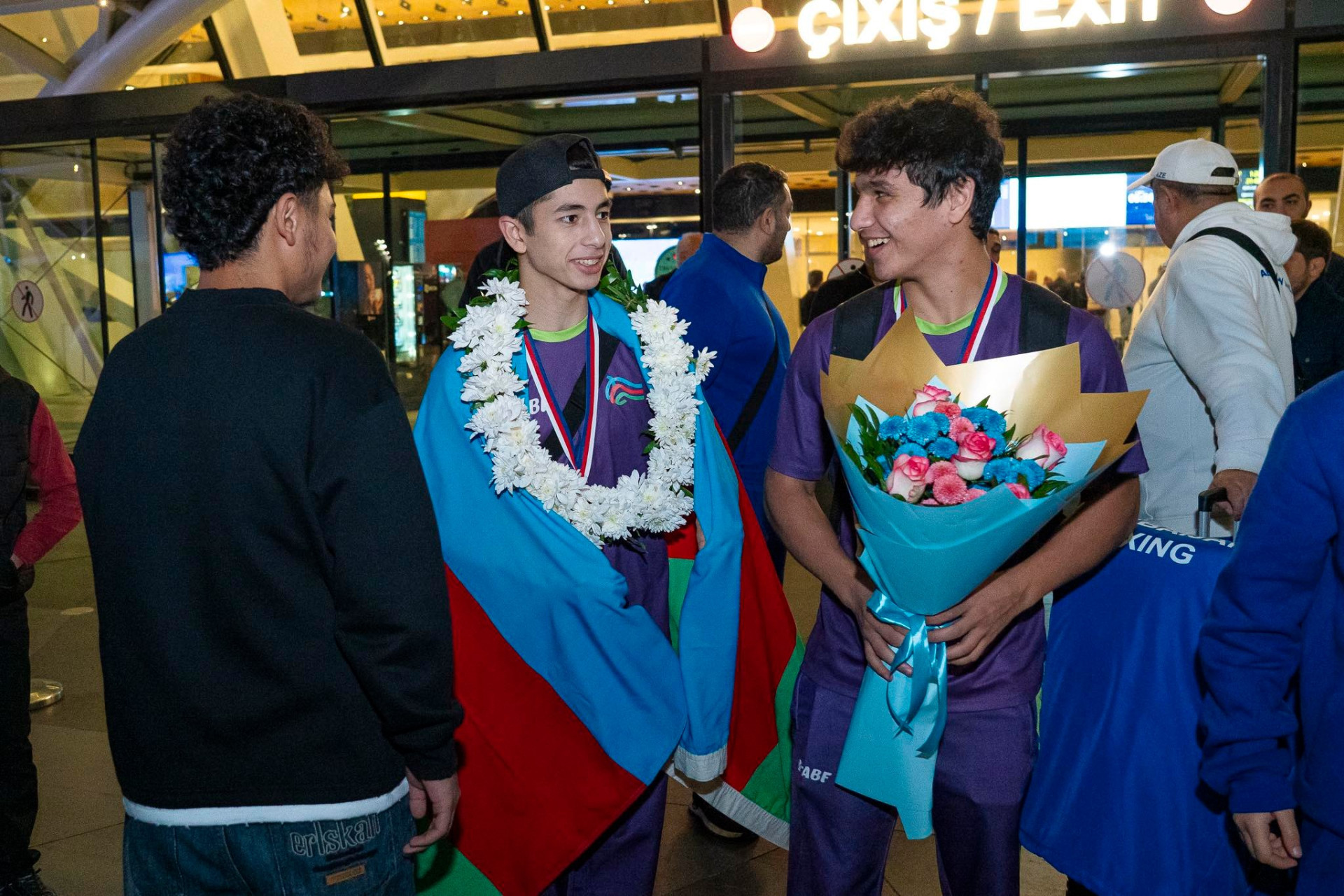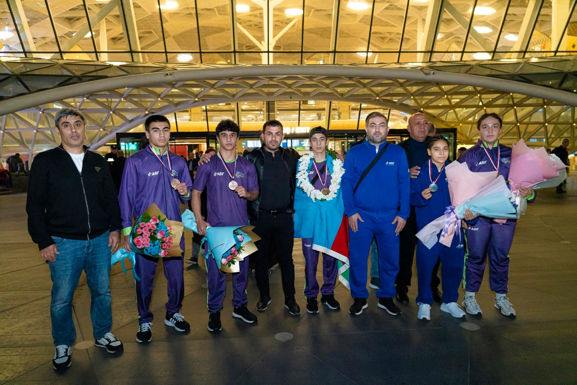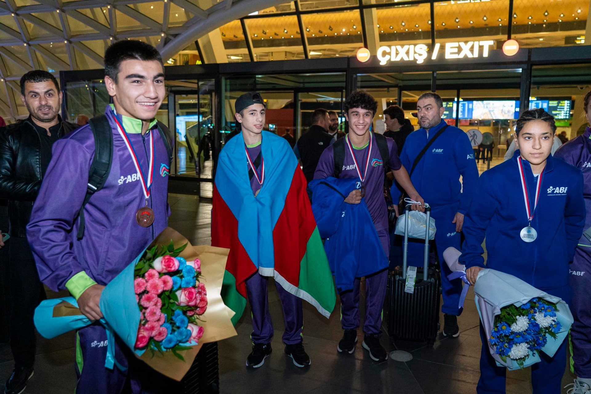 İdman.Biz xəbər verir ki, Heydər Əliyev Beynəlxalq Aeroportunda millimizi Boks Federasiyasının kollektivi, idman ictimaiyyətinin nümayəndələri, bokssevərlər və idmançıların ailə üzvləri qarşılayıblar.