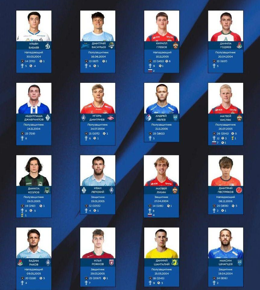 İlin ən yaxşı gənc futbolçusu mükafatı uğrunda Rusiya Premyer Liqasında mövsümün oyunlarının 50%-da iştirak etmiş 21 yaşadək futbolçular mübarizə aparır.