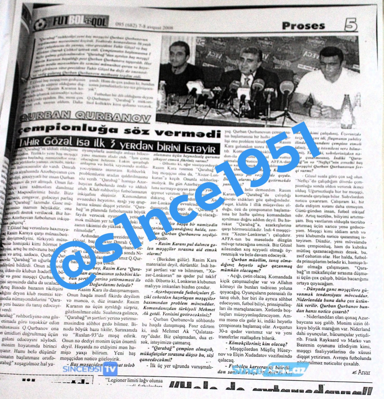 Bu münasibətlə sosial şəbəkələrdə Qurban Qurbanovun “Qarabağ”la ilk müqavilə imzaladığı vaxt “Futbol+qol” qəzetinə verdiyi müsahibənin fotosu yenidən paylaşılıb.