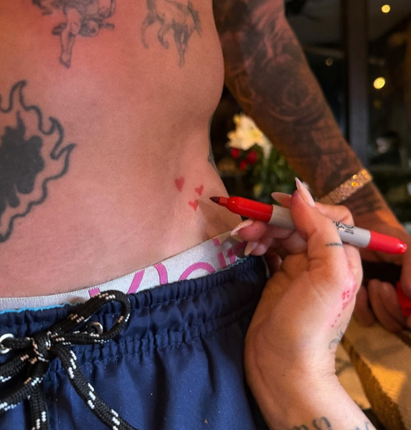 Birinci fotoda Tini əli ilə futbolçunun qarın nahiyəsində kiçik qırmızı ürəklər çəkir. Sadə, amma emosional baxımdan güclü olan bu jest dərhal fanatların reaksiyasına səbəb olub. Paylaşımda yer alan qısa videoda isə həmin ürəklərin artıq döymə şəklində De Paulun dərisinə həkk edildiyi görünür. Bu, əvvəlki romantik anın sadəcə jest olaraq qalmadığını, qalıcı bir qərara çevrildiyini göstərir.