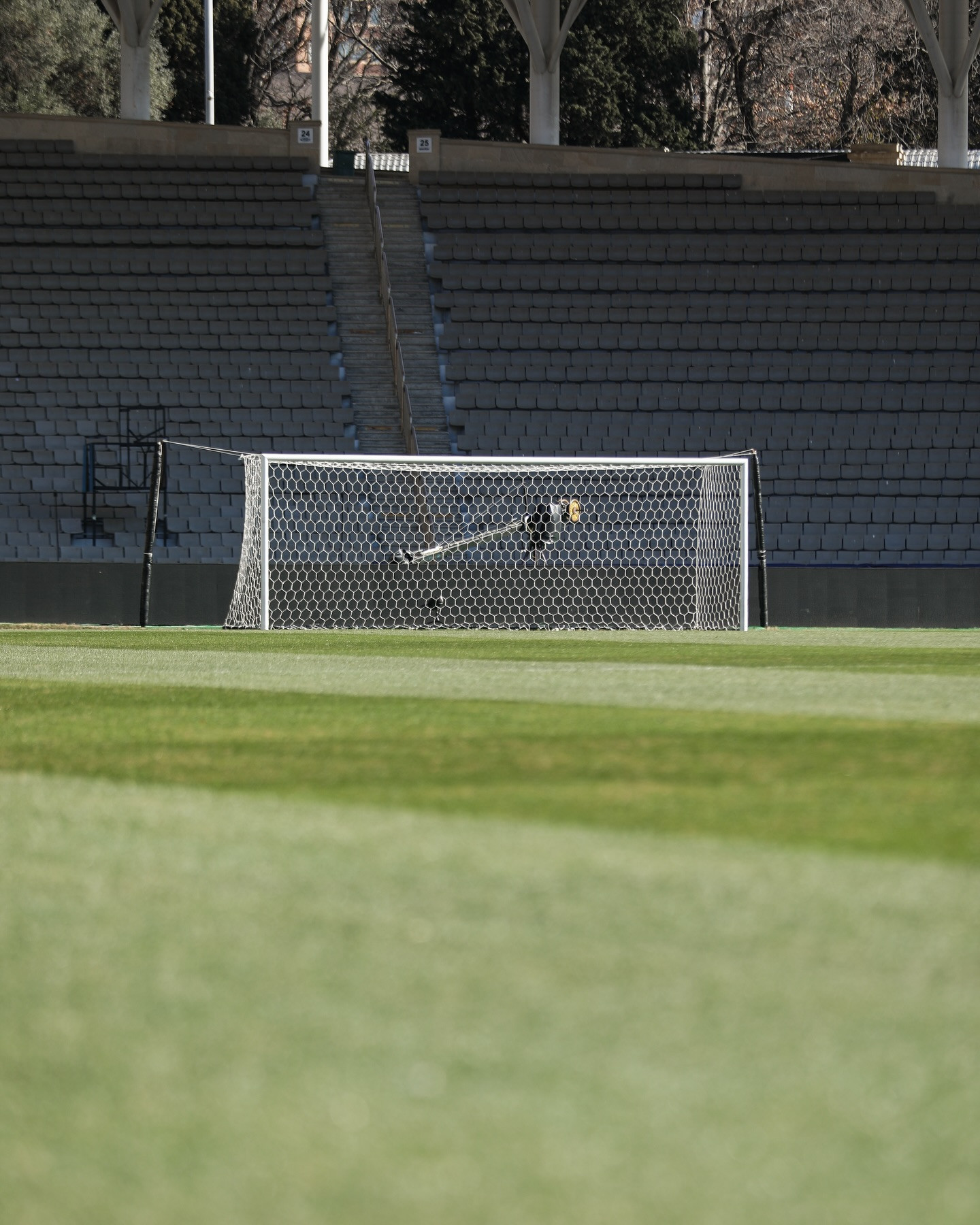 İdman.Biz xəbər verir ki, arenada ötən gün yağan qar səbəbindən örtülmüş ot örtüyünün oyun üçün tam hazır vəziyyətə gətirilməsi məqsədilə təmizləmə və bərpa işləri aparılıb.