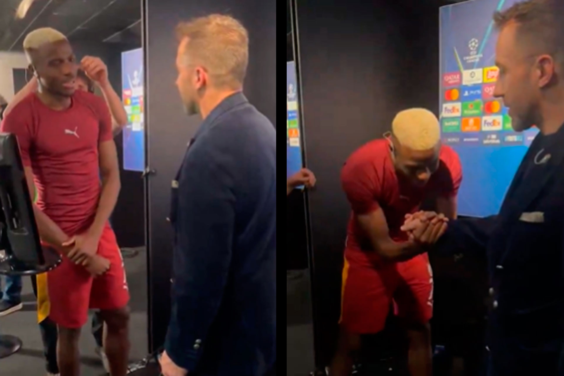 İdman.Biz xəbər verir ki, Osimhen uşaqlıqdan kumiri olan sabiq futbolçuya yaxınlaşaraq ondan selfi çəkdirməyi xahiş edib. Həmin anlar sosial şəbəkələrdə böyük marağa səbəb olub və azarkeşlər tərəfindən rəğbətlə qarşılanıb.