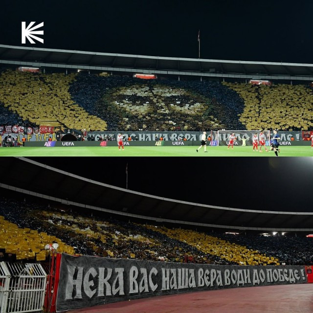 Belə ki, azarkeşlər tribunalarda müqəddəs Simeon Mirotoçivin təsviri və “Qoy inancımız sizi qələbəyə aparsın” bannerini nümayiş etdiriblər.