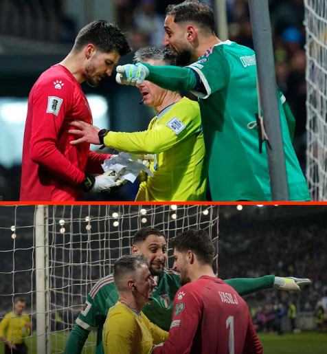 İtaliya milli komandasının qolkiperi Canluici Donnarumma Bosniya və Herseqovina millisinin qapıçısı Nikola Vasil üçün hazırlanmış penalti qeydlərini aşkar edərək hakimə məlumat verib.