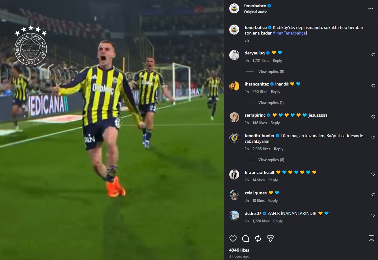 İdman.Biz xəbər verir ki, paylaşımda “Kadıköydə, səfərdə, küçədə, hamı birlikdə son ana qədər inan, Fənərbağça!” ifadələri yer alıb.