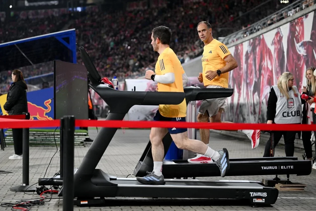İdman.Biz xəbər verir ki, o, qarşılaşma boyu meydanın kənarında quraşdırılmış qaçış trenajorunda hərəkətdə olub və 90 dəqiqə ərzində 21,41 km məsafə qət edib.