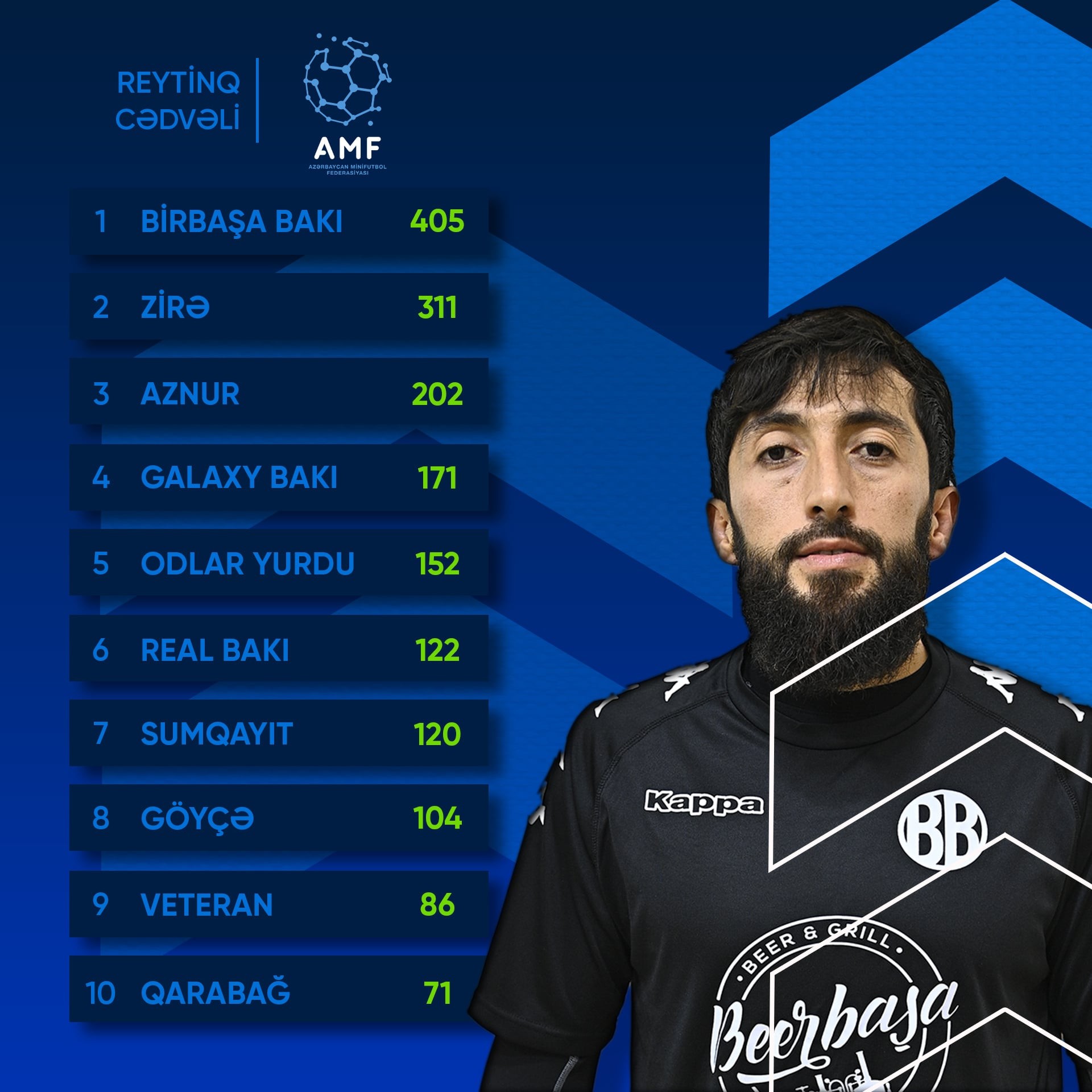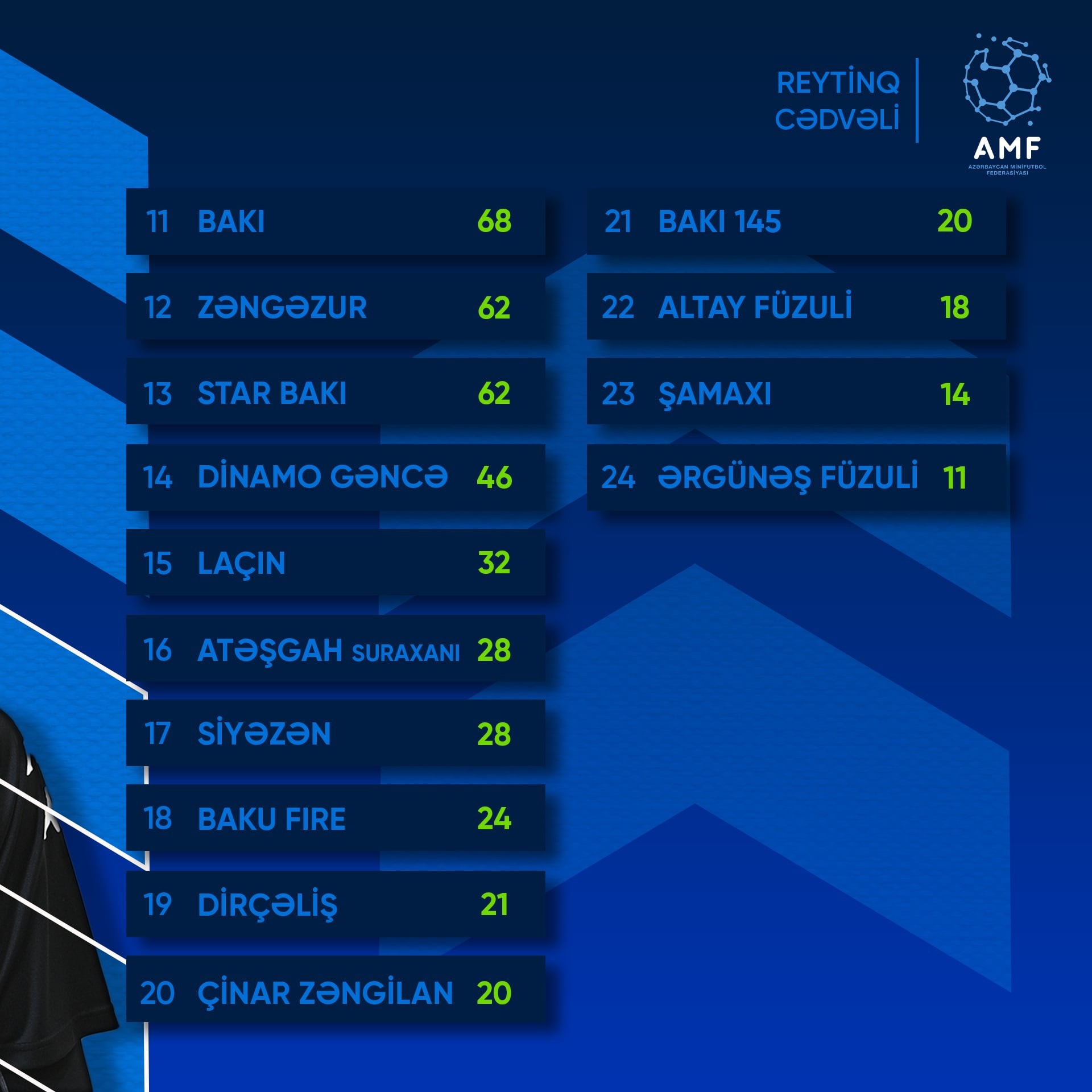 Azərbaycan minifutbol klublarının 2025-ci il üçün reytinq cədvəli müəyyənləşib.