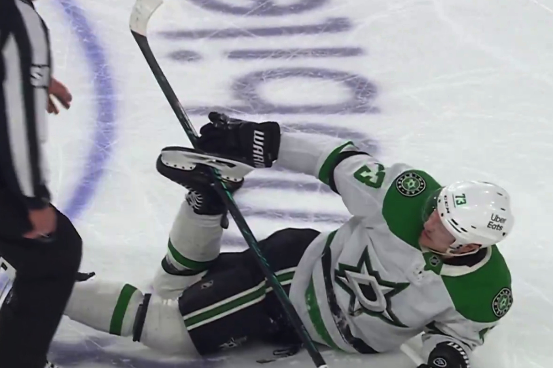 Belə ki, "Dallas Stars" komandasının oyunçunun hokkey çubuğu konkisində ilişib və onu çıxarmaq mümkün olmayıb. Matç zamanı Hadisəni görən hakim dərhal köməyə çatıb.