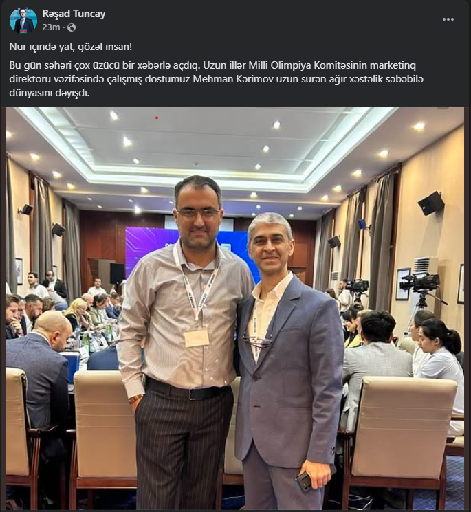 Azərbaycan Milli Olimpiya Komitəsinin (MOK) Beynəlxalq Proqramlar Departamentinin rəhbəri Mehman Kərimov vəfat edib.