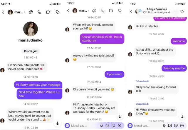Mariya Avdiyenko bildirib ki, gecə zamanı biznesmen ona maraq göstərib, diqqət ayırıb. Lakin həmin vaxt Adnanın ətrafında başqa bir qadın - 2022-ci ilin “Türkiyənin və dünyanın ən yaxşı modeli” seçilmiş Büşra Karakaş da olub. O həmçinin Türkiyənin kikboks yığmasının üzvüdür.