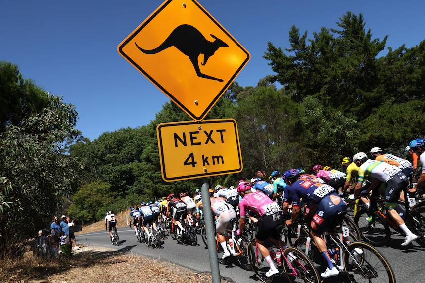 İdman.Biz xəbər verir ki, yarışın gedişində bir kenquru qəfil yola çıxaraq velosipedçilərin qarşısını kəsib. Heyvanın yoldan keçdiyi anda peloton (yarış zamanı velosipedçilərin əsas, sıx hərəkət edən qrupu) sürətlə hərəkətdə olub. İdmançılardan biri toqquşmadan yayına bilməyib və həm velosipedçi, həm də kenquru yerə yıxılıb. Digər iştirakçılar isə vaxtında əyləci sıxaraq Avstraliyanın “qanuni sakini”nə yol veriblər.