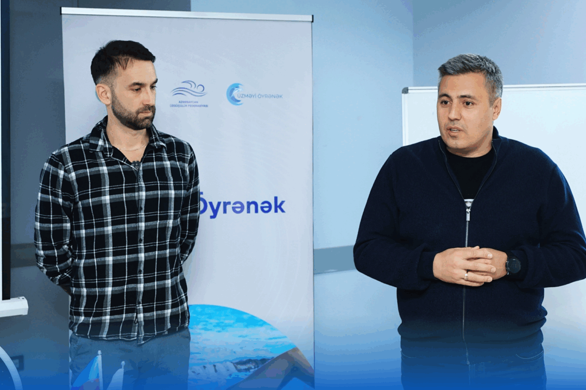 İdman.Biz bildirir ki, təlim proqramını uğurla başa vuran məşqçilər “Üzməyi Öyrənək” layihəsi çərçivəsində eyni metodologiya əsasında məktəblilərə üzgüçülük dərsləri keçəcəklər. Bu yanaşma ölkə üzrə vahid üzgüçülük tədrisi modelinin formalaşdırılmasına və mütəxəssislər arasında ortaq metodiki yanaşmanın tətbiqinə xidmət edir.