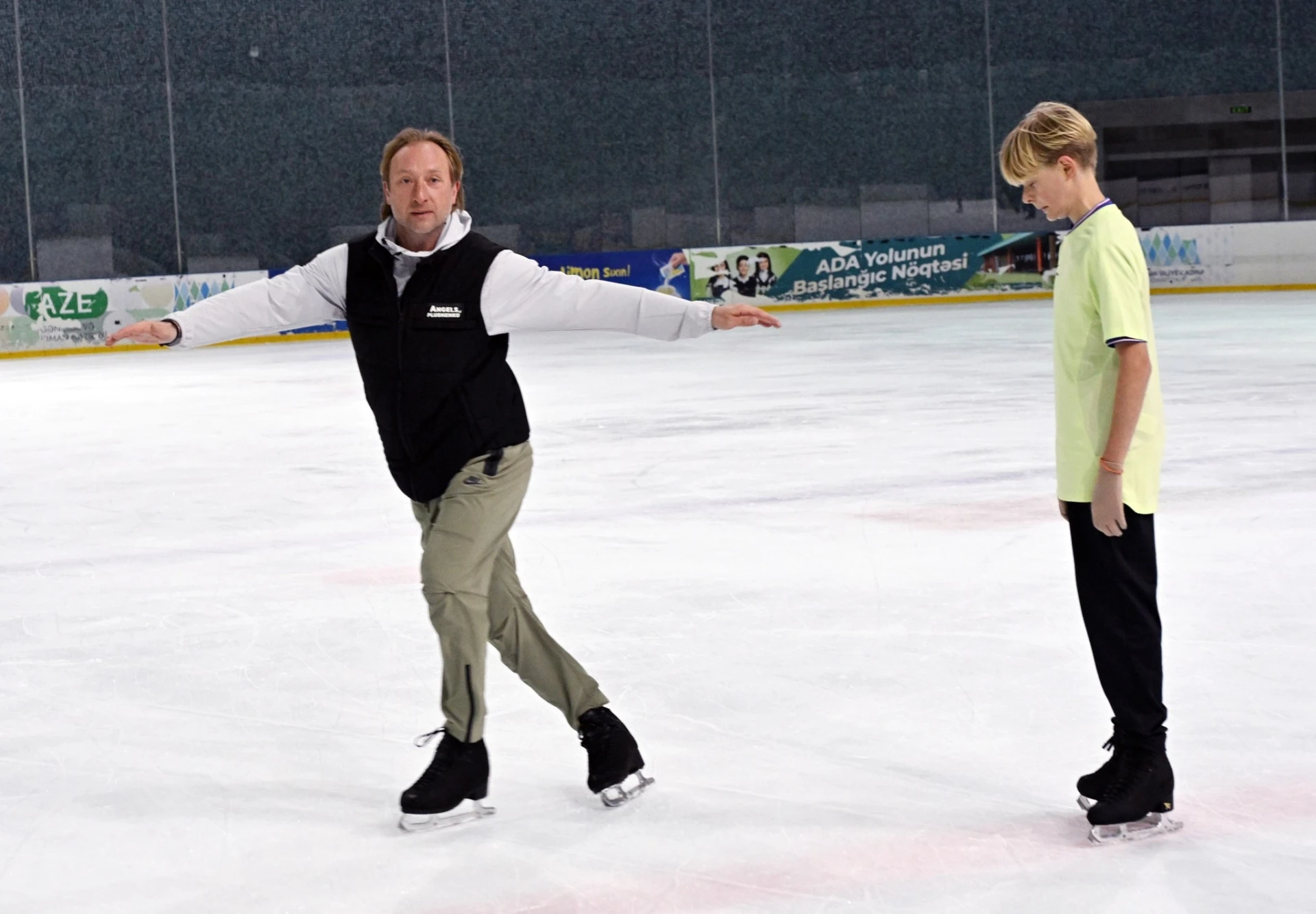 İdman.Biz xəbər verir ki, Heydər Əliyev adına İdman-Konsert Kompleksinin Buz Arenasında keçirilən toplanışda Yevgeni Pluşenko Azərbaycanda fəaliyyət göstərən “Ocaq” və “Tamis” idman klublarının üzvləri üçün ustad dərsləri keçib.