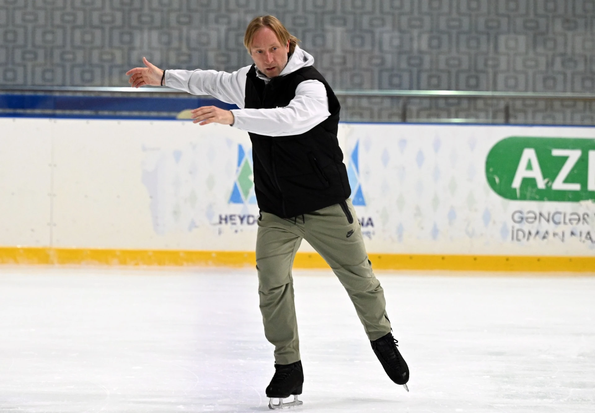 Fiqurlu konkisürmə üzrə dördqat Olimpiya mükafatçısı, üçqat dünya və yeddiqat Avropa çempionu Yevgeni Pluşenko yenidən Bakıya gəlib. Təcrübəli mütəxəssis paytaxtımızda təşkil olunan fiqurlu konkisürmə üzrə təlim-məşq toplanışında iştirak edib. Gənclər və idman naziri Fərid Qayıbov ustad dərsinə baxıb.