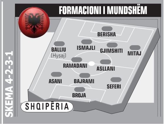 Midfielders: Amir Abrashi (Grasshoppers), Yiber Ramadani (Lecce), Klaus Gjasula (Darmstadt), Qazim Laci (Sparta Prague), Nedim Bajrami (Sassuolo), Kristjan Asllani (Inter), Enrest Muci (Besiktas), Medon Berisha (Lecce).