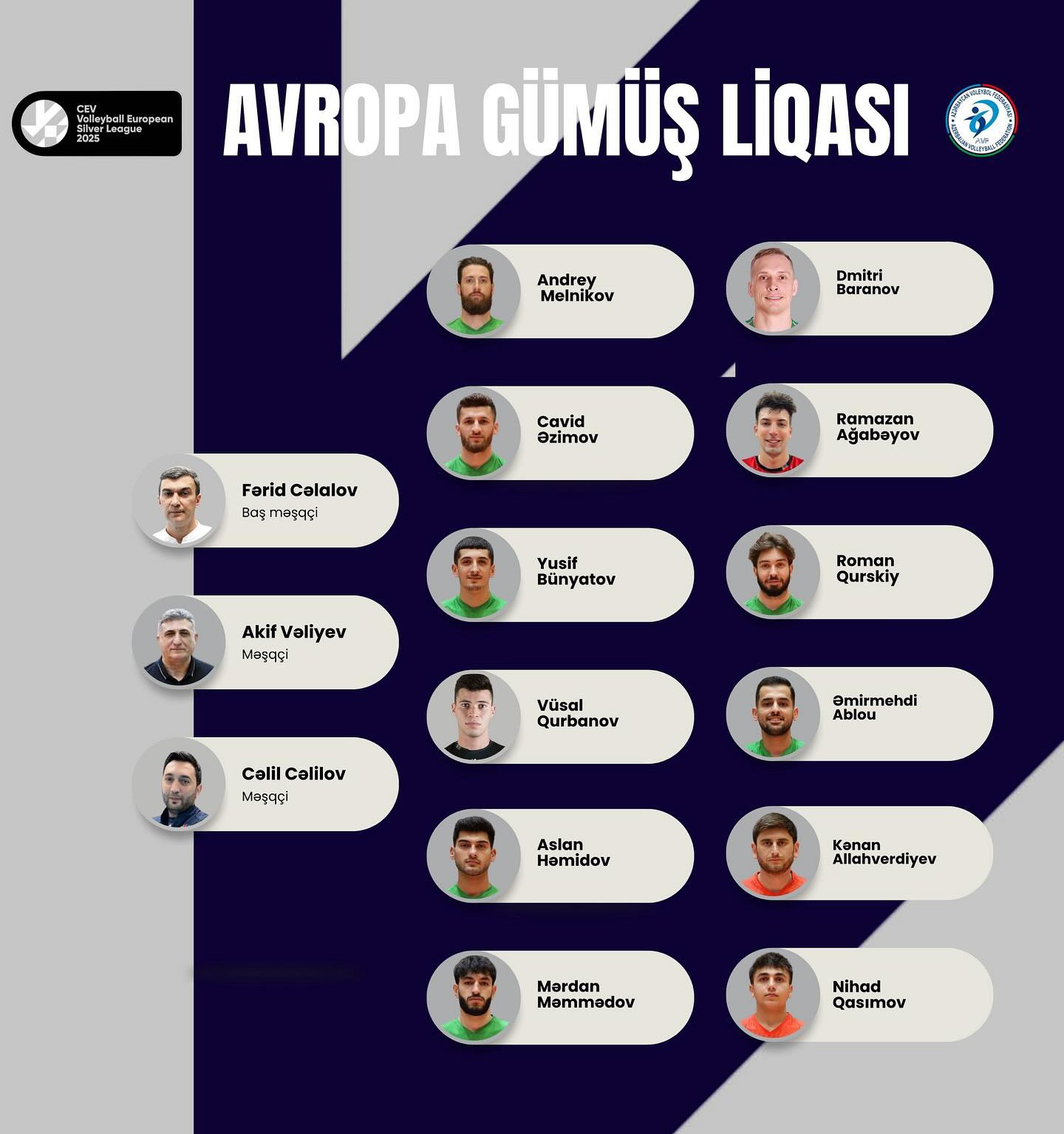 The Azerbaijan national men’s volleyball team has announced its final roster for the upcoming CEV Silver League.