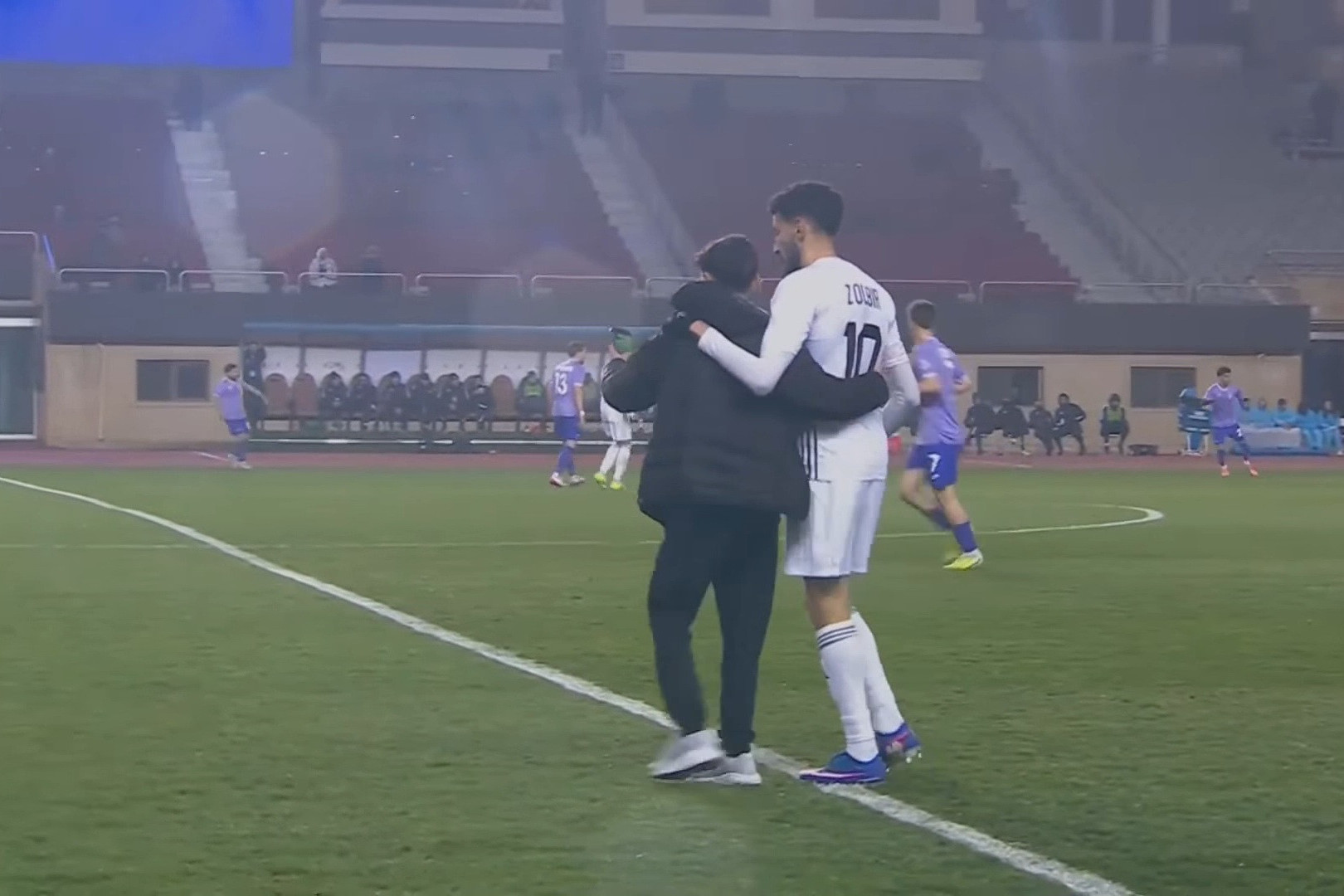 Как сообщает İdman.Biz, по ходу встречи один из болельщиков сумел преодолеть ограждения и выбежал на поле.