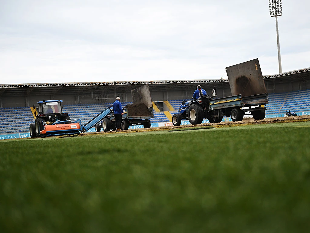 На стадионе "Лив Бона Деа Арена" стартовали масштабные работы по обновлению натурального травяного покрытия.