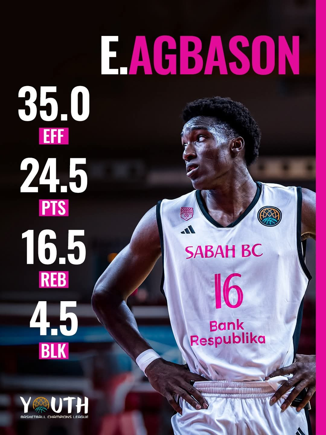 Агбасон также отметился яркими выступлениями в отдельных матчах. В игре против турецкого "Тофаша Бурса" он оформил дабл-дабл, набрав 26 очков и сделав 23 подбора. Встреча завершилась победой "Сабаха" со счетом 86:60.