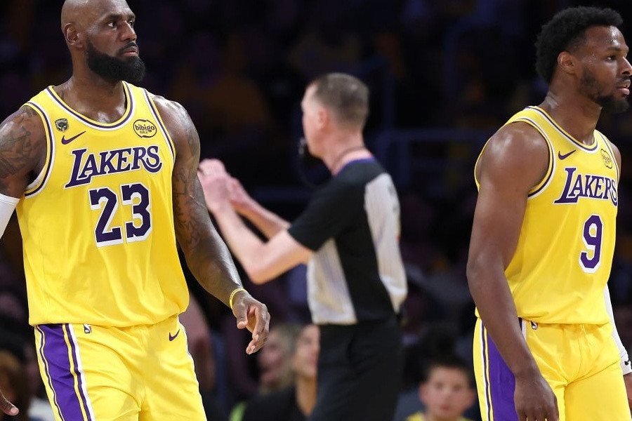 Форвард "Лос-Анджелес Лейкерс" Леброн Джеймс эмоционально отреагировал на совместную игру со своим сыном Бронни в матче плей-офф НБА против "Хьюстон Рокетс".