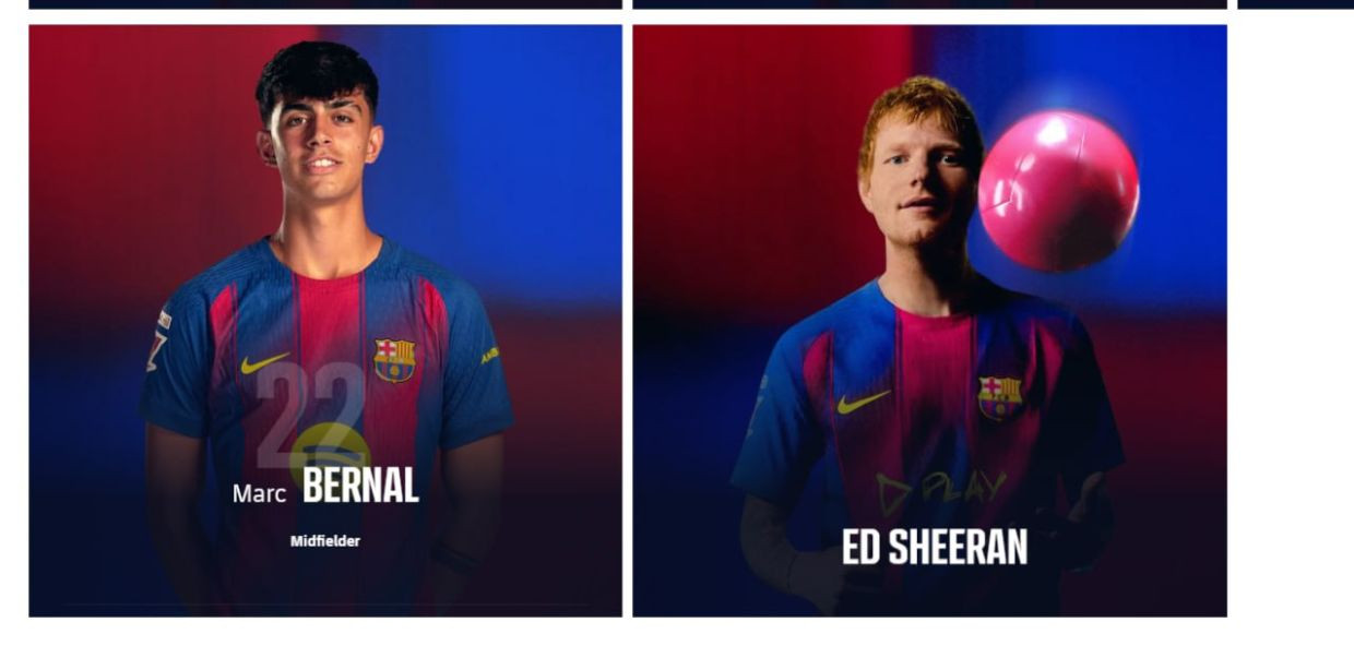 Пресс-служба "Барселоны" на официальном сайте клуба добавила в состав основной команды известного британского поп-исполнителя Эда Ширана.