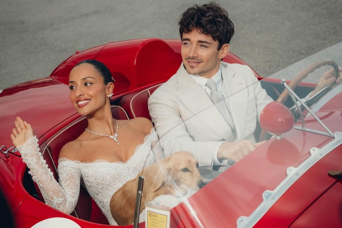 На снимках молодожены запечатлены вместе с близкими и своей собакой по кличке Лео. В день церемонии пара проехала по улицам Монако на легендарном Ferrari 250 Testa Rossa, что стало одной из самых ярких деталей торжества.