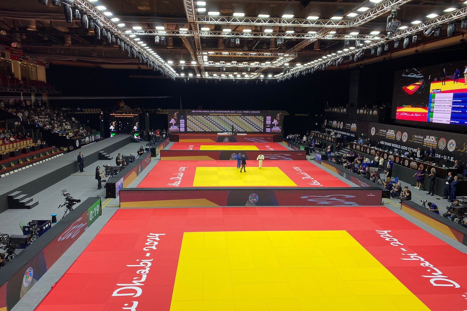 С другой стороны, удивляет место проведения ЧМ. «Мубадала арена» не производит впечатление локации, где в полной мере может развернуться главный старт сезона в преддверии Олимпиады. Атмосфера мундиаля не чувствуется, и, возможно, такой эффект производят и небольшие трибуны. Они находятся лишь с одной стороны зала: один островок предназначен для делегаций, другой для болельщиков. Тогда как посереди места для почетных гостей.
