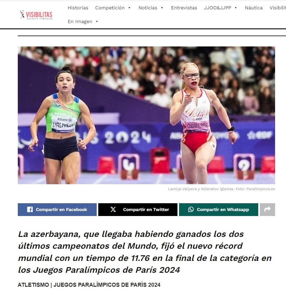 İdman.biz сообщает, что испанский сайт visibitas.com, пишущий о женском спорте, написал об успехе Ламии Велиевой на Паралимпийских играх Париж-2024.
