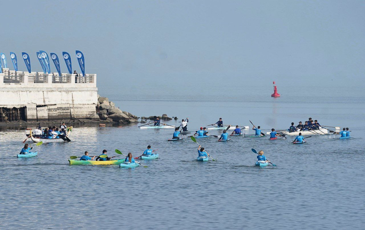 После пресс-конференции более 100 спортсменов провели показательные заезды на Каспийском море в дисциплинах каяк, каноэ, академическая гребля и драгон.