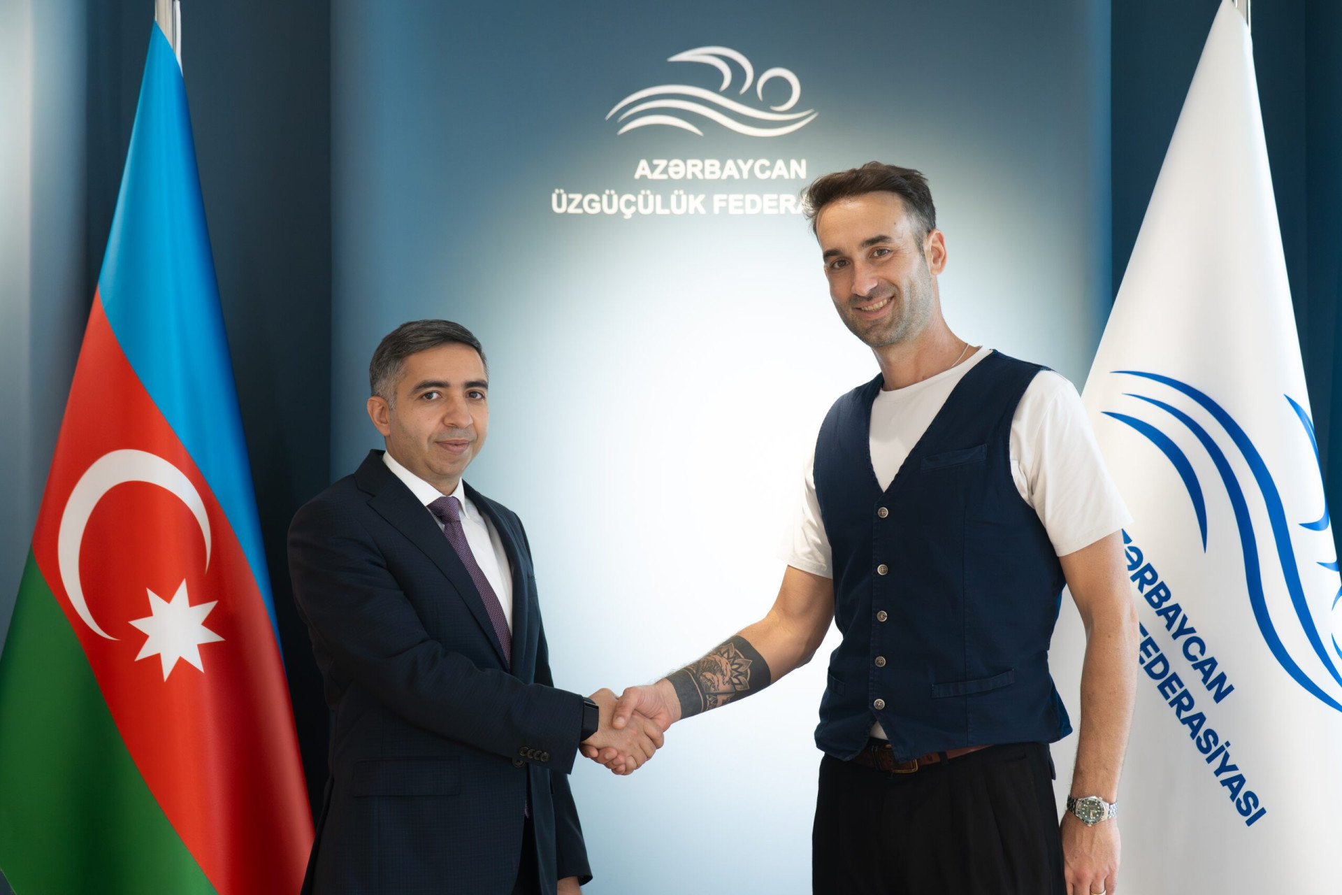 Сегодня новый главный тренер был представлен членам национальной сборной генеральным секретарем Федерации плавания Азербайджана Огтаем Атаевым.