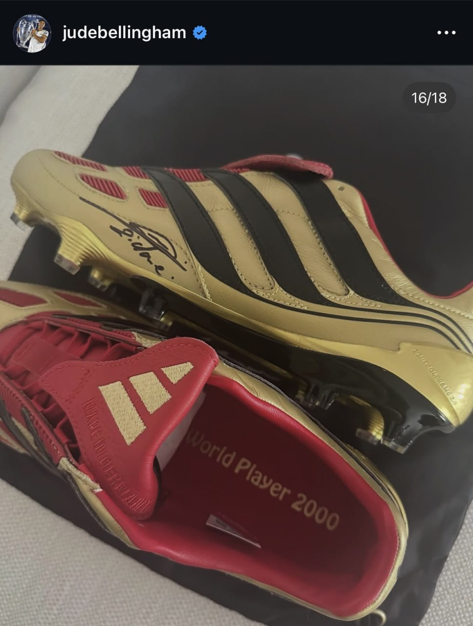 Как передает İdman.Biz, англичанину подарили золотые бутсы Зинедина Зидана образца 2000 года. Именно в них легендарный француз выступал в период своего расцвета и получил индивидуальную награду по итогам года.