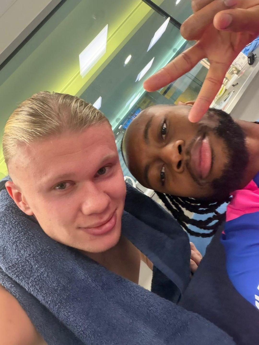 Нападающий "Манчестер Сити" Эрлинг Холанд сделал совместное фото с вингером Антуаном Семеньо после перехода футболиста в английский клуб.