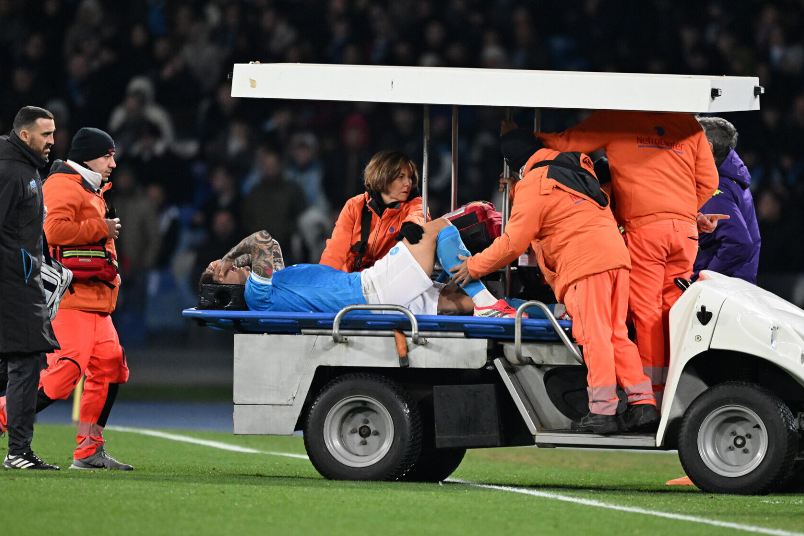 В матче 23‑го тура чемпионата Италии "Наполи" обыграл "Фиорентину" (2:1) . Ди Лоренцо неудачно приземлился на ногу на 28‑й минуте встречи и не смог продолжить игру. 32‑летний защитник не смог самостоятельно покинуть поле, его унесли на носилках.