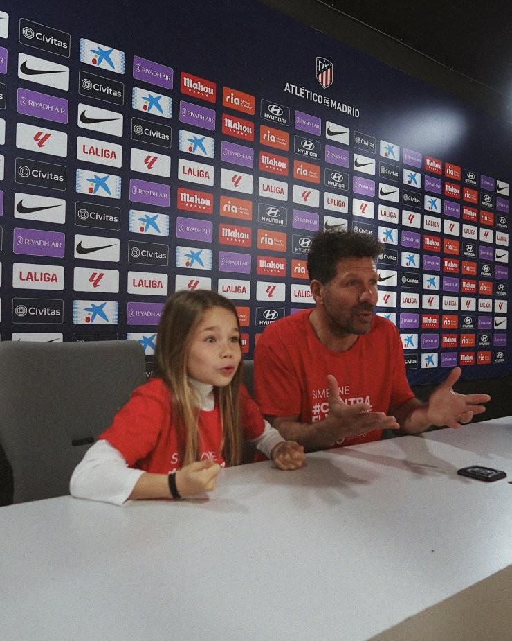Милота дня. Главный тренер «Атлетико» Диего Симеоне учит дочь, как правильно общаться с журналистами на пресс-конференциях.