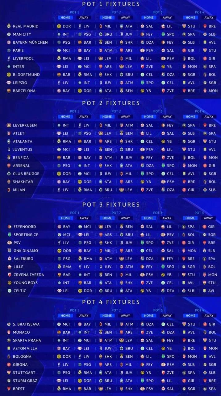 Напомним, с сезона-2024/2025 в Лиге чемпионов будут играть 36 команд, а не 32, как прежде. Ранее клубы были разбиты на группы по четыре команды в каждой, теперь в ЛЧ станет использоваться так называемая швейцарская система, где все 36 команд будут находиться в единой турнирной таблице. Финал Лиги чемпионов УЕФА сезона-2024/2025 года пройдёт 31 мая 2025 года на стадионе «Альянц Арена» в Мюнхене.